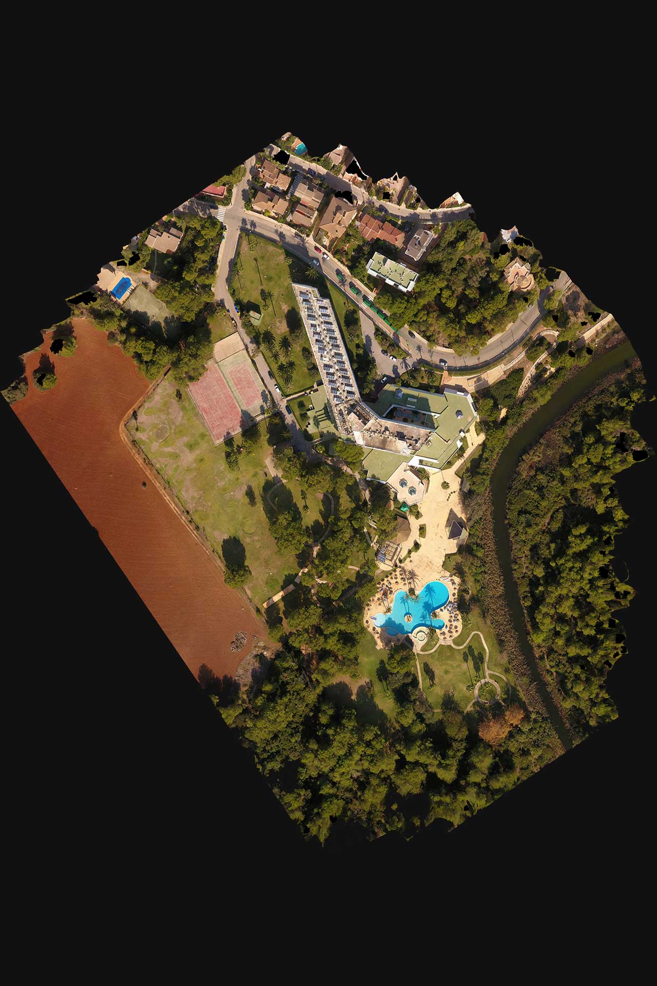 Disponemos de drones Topográficos, lo que nos permite obtener Fotografías Georreferenciadas con una resolución de hasta 1cm. por pixel sobre el terreno, y con la misma precisión que con puntos tomados sobre el terreno con un GPS centimétrico.