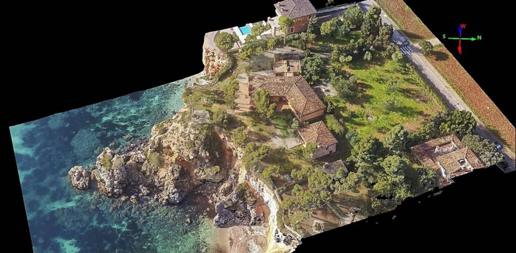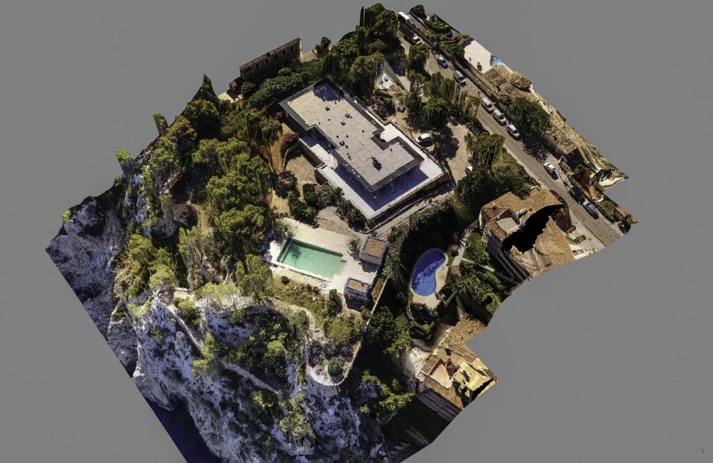 A point cloud is a digital representation of a 3D object or space, formed by a collection of points with X, Y, and Z coordinates. These points are obtained using photogrammetry techniques from photographs taken by a drone.