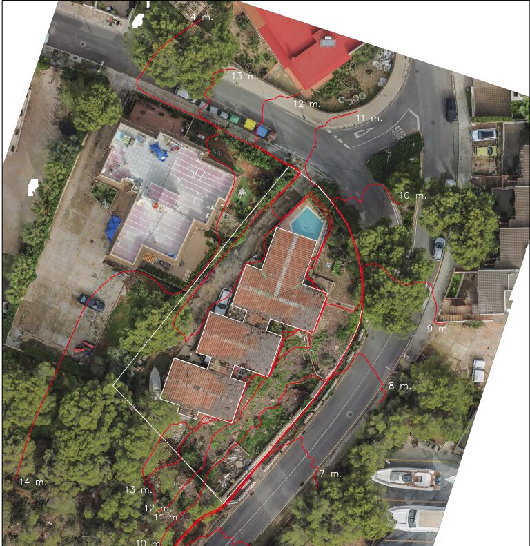 A topographic survey is a process that involves measuring and graphically representing the physical characteristics of a terrain, including its shape, elevations (contour lines), and existing features, to create a plan or digital model. This technical study is fundamental for planning construction projects, engineering projects, urban development, and many other applications that require precise knowledge of the Earth’s surface. By using aerial photographs, all the details of the terrain and buildings are clearly visible, all to scale, allowing for the creation of a topographic map of the surface and structures.