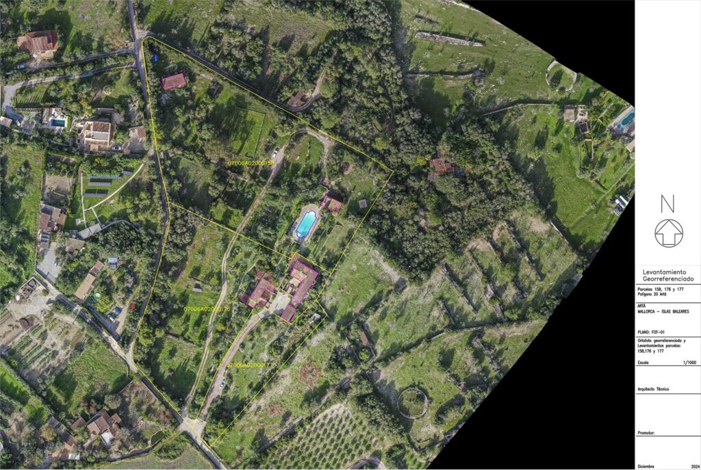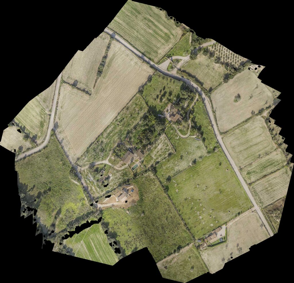 A partir de una ortofoto georreferenciada podemos dibujar los lindes de una finca, las dimensiones de una construcción, etc., generando el plano topográfico de la finca o superficie con la misma precisión que si se realizara tomando puntos sobre el terreno con un GPS profesional, añadiendo más valor que un plano con líneas negras sobre un fondo blanco, ya que aquí se “ve” toda la finca